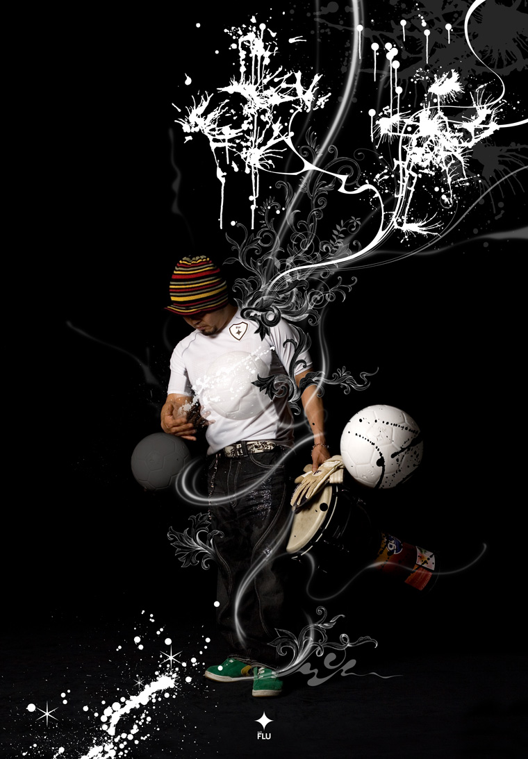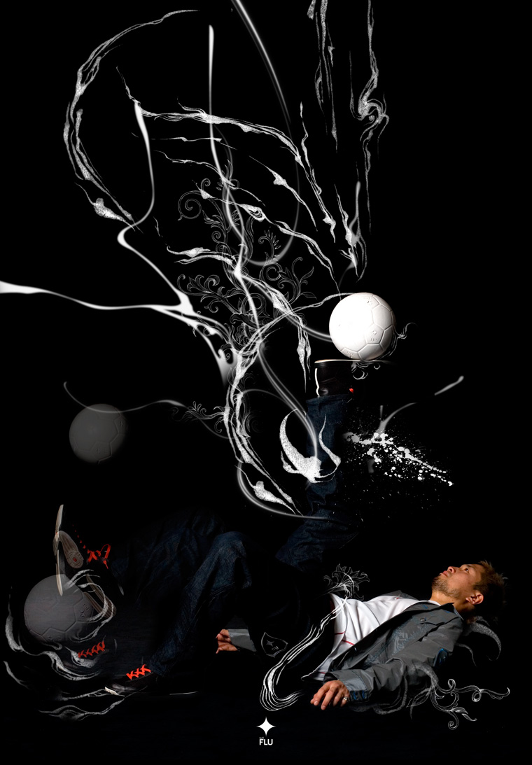 サッカーをテーマに展開した商品なので、フリースタイルフットボールチーム球舞のメンバーにパフォーマンスをしてもらい、連写したカットを合成しました。