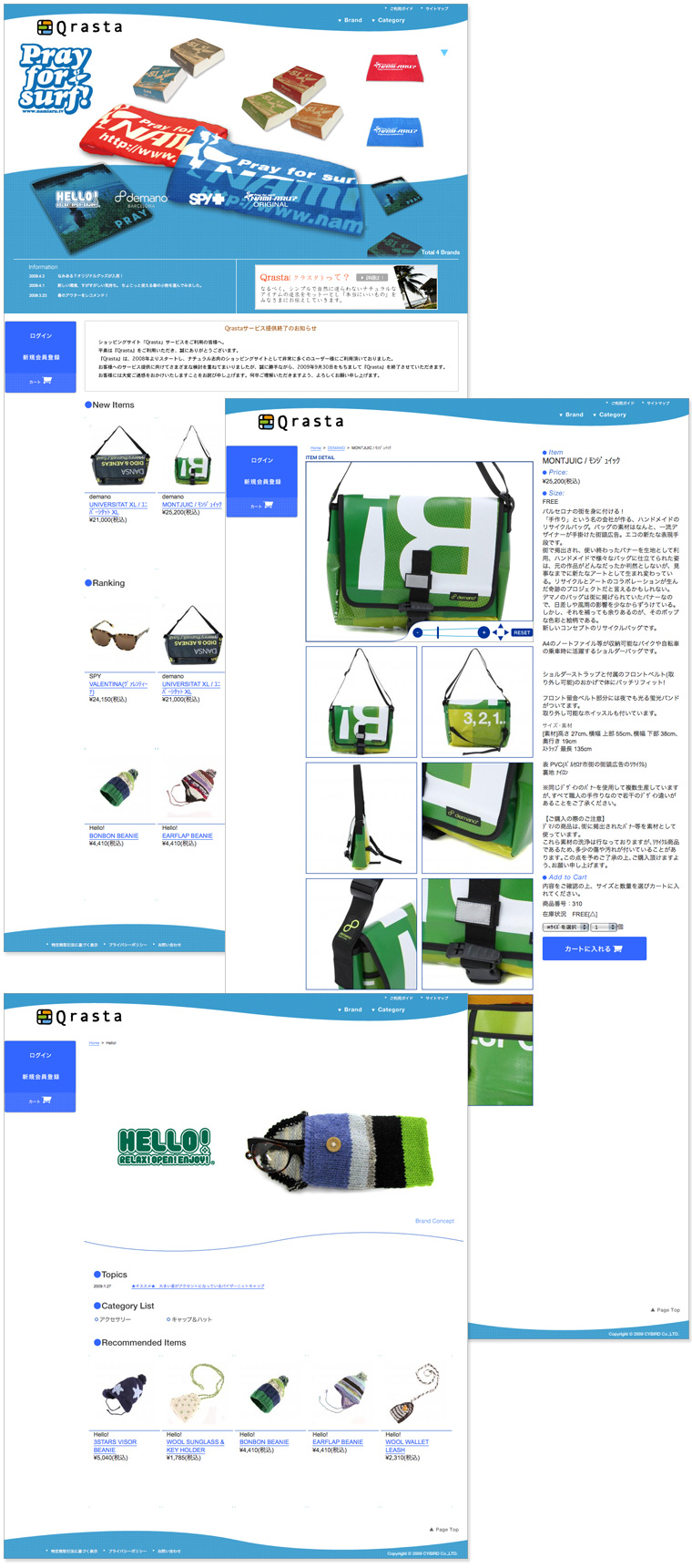水を連想させるインターフェイスデザインと、TopページFlashエリアにフューチャーするブランドを、差し替え可能な仕様で制作。ログイン部分をFlashとJavaScriptを融合させ、波を表現しました。 (Flash+HTML)