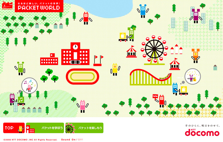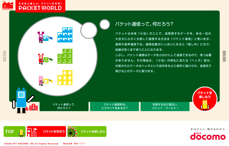 パケット通信の内容をわかりやすく説明。Flashで表現することで、ユーザー参加型コンテンツに仕上げました。