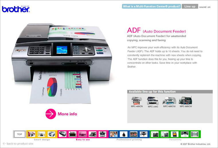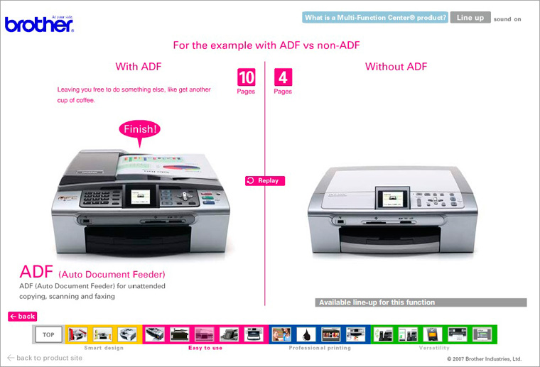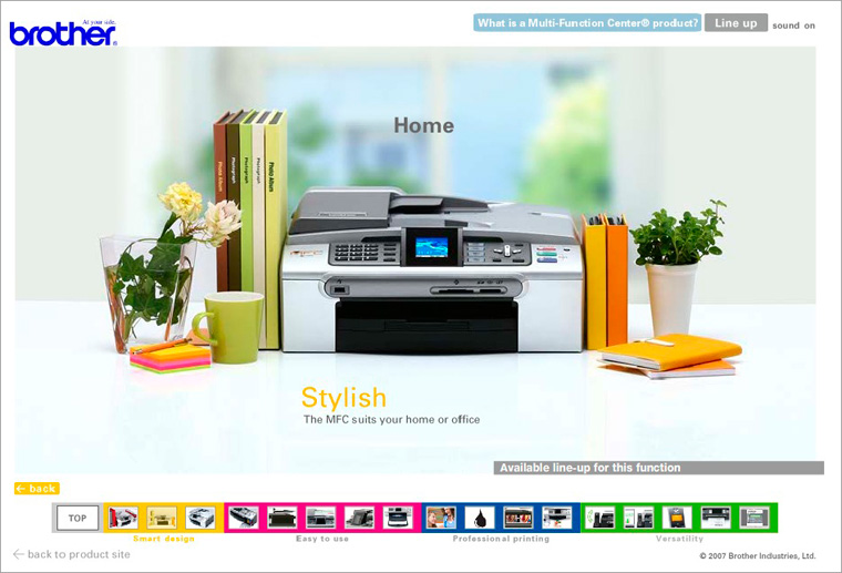 商品の魅力と使用例を様々なFashアニメーションで紹介。グローバルサイトなので、各国に合わせた仕様変更(ローカライズ)が可能で、汎用性の高い仕様で制作しました。 (Flash)